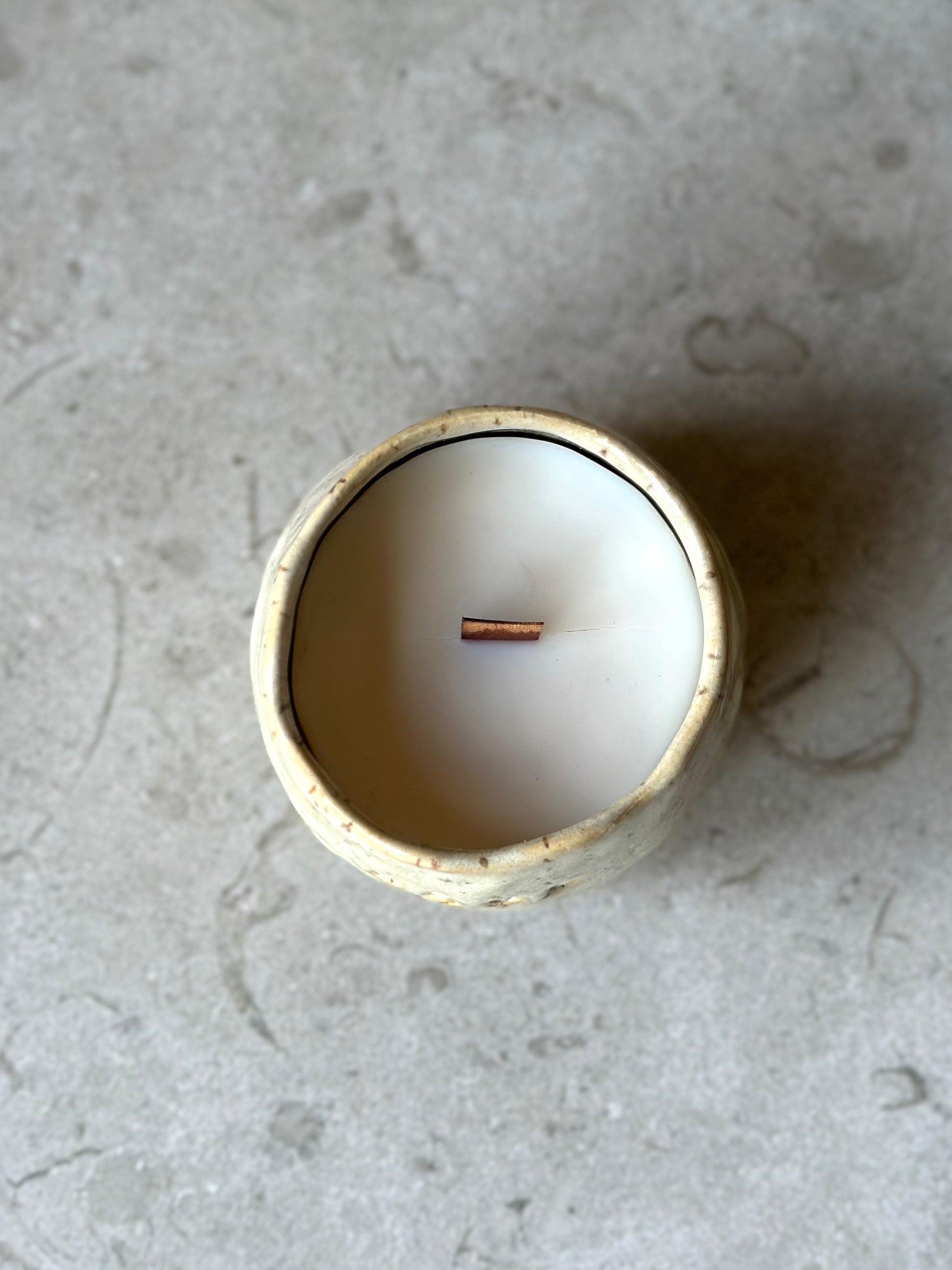Scented candle made from rapeseed wax, an environmentally friendly wax that does not release soot or toxins. Scented with organic lavender essential oil.