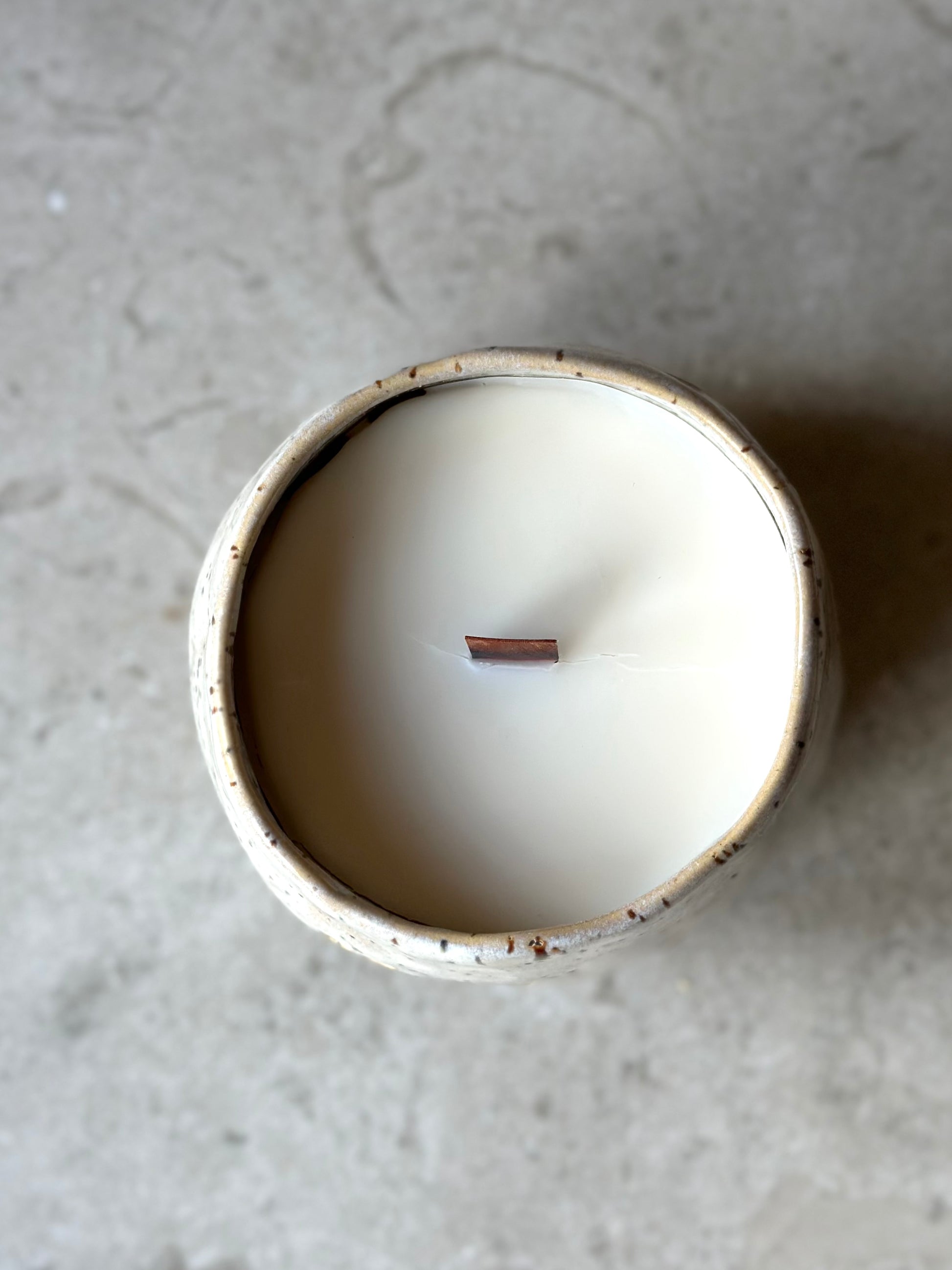 Stort maffigt doftfljus av rapsvax, ett miljövänligt vax som inte släpper ifrån sig sot och gifter. Doftsatt med ekologisk eterisk olja av citrongräs.
